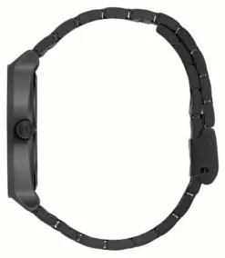 - The dial exhibits black Roman numeral, Arabic numeral and baton indices with black hour, minute and second hands.