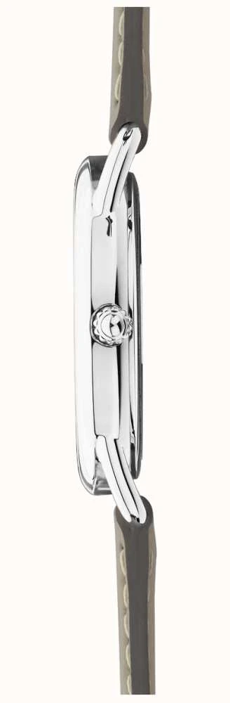 - The dial of the watch is white mother-of-pearl. Silver-coloured hour-markers and dauphine hands contrast it.