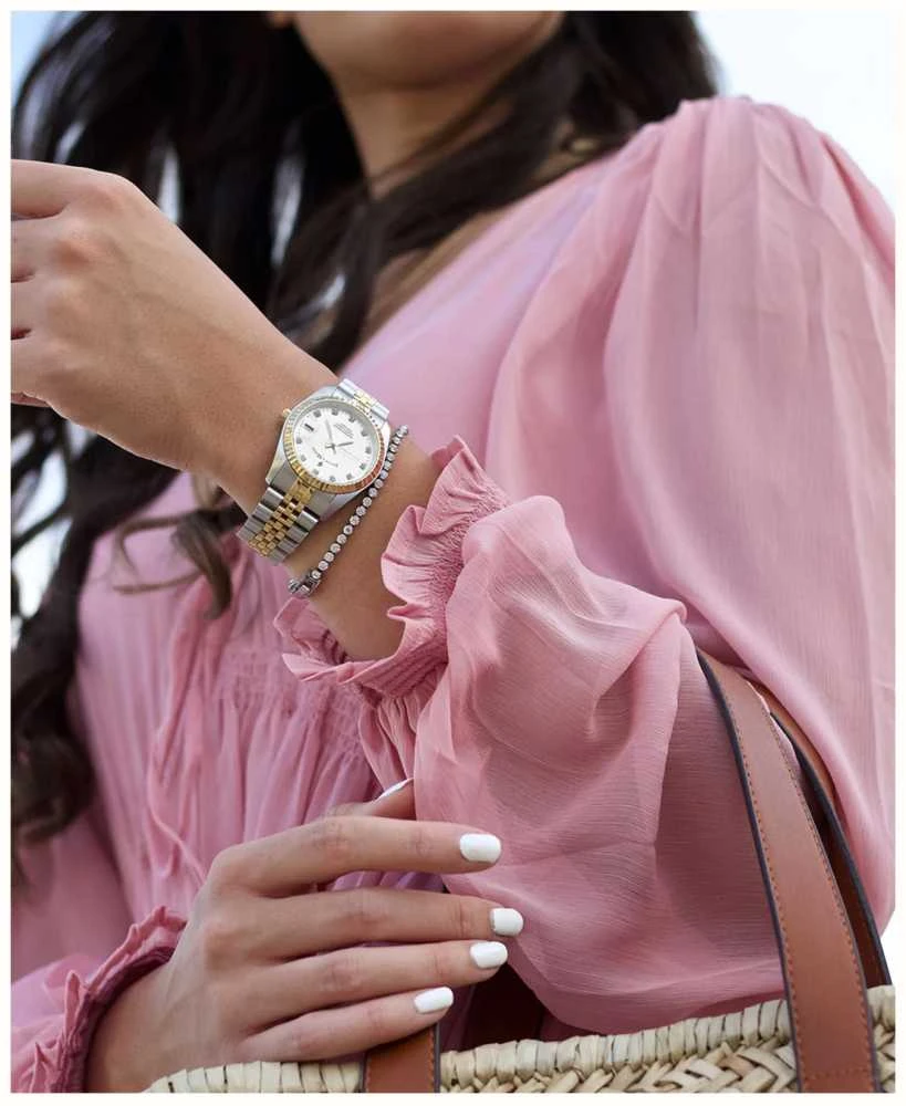 - Completing the elegant silhouette of each watch is a bracelet-style strap.