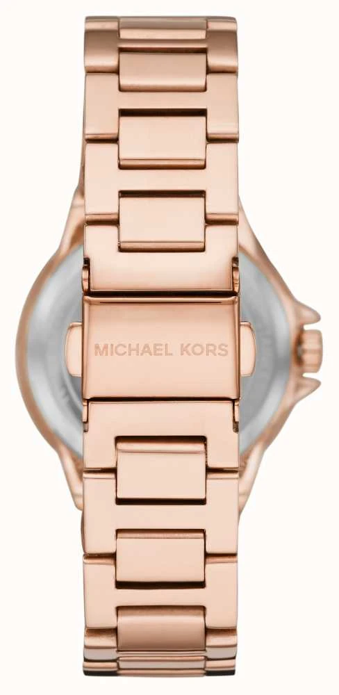 - Securing the watch is a rose gold-toned stainless steel bracelet.