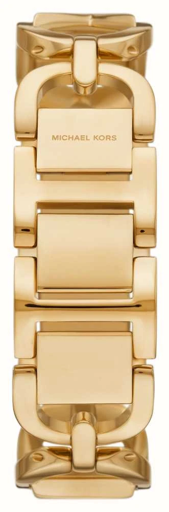 - At the centre of the watch is a gold-tone sunray dial embellished with the MK logo.