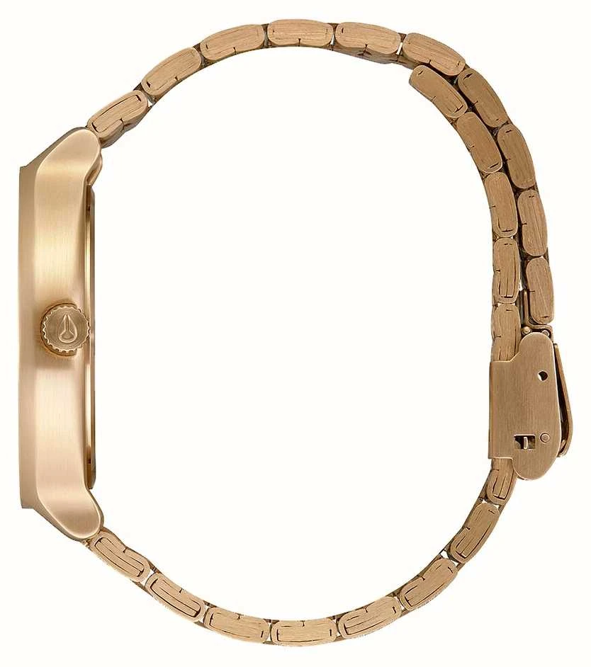 - Securing the watch is a gold IP plated stainless steel bracelet.Â