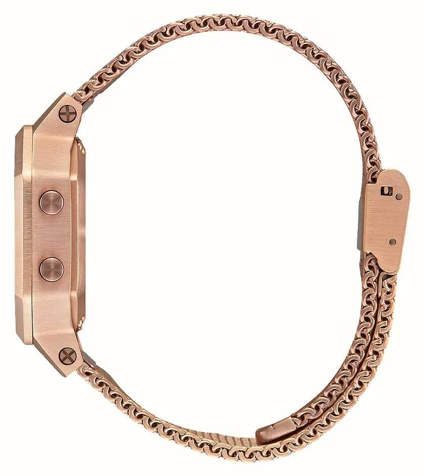 - Securing the watch is a rose-gold IP plated stainless steel mesh bracelet.Â