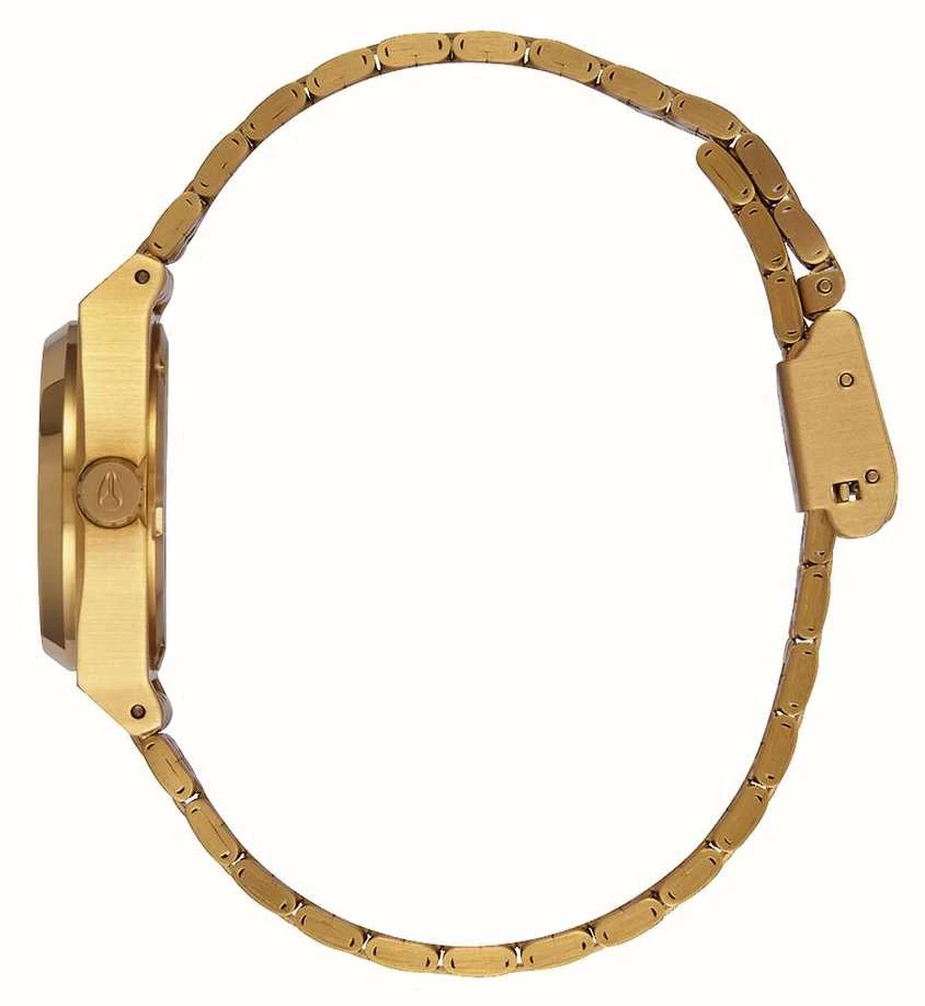 - The gold sunray dial is contrasted by gold-coloured indices and hands. Â