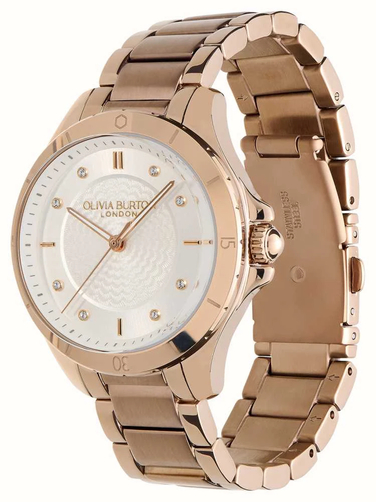 - Olivia Burton watches are characterised by beautiful vintage tones and themes of nature.