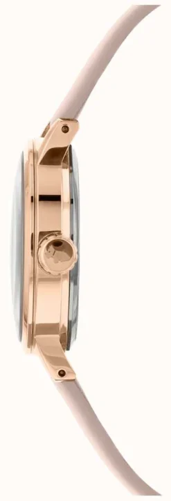 - This model exhibits a beige dial adorned with crystal indices and gold hour and minute hands.Â
