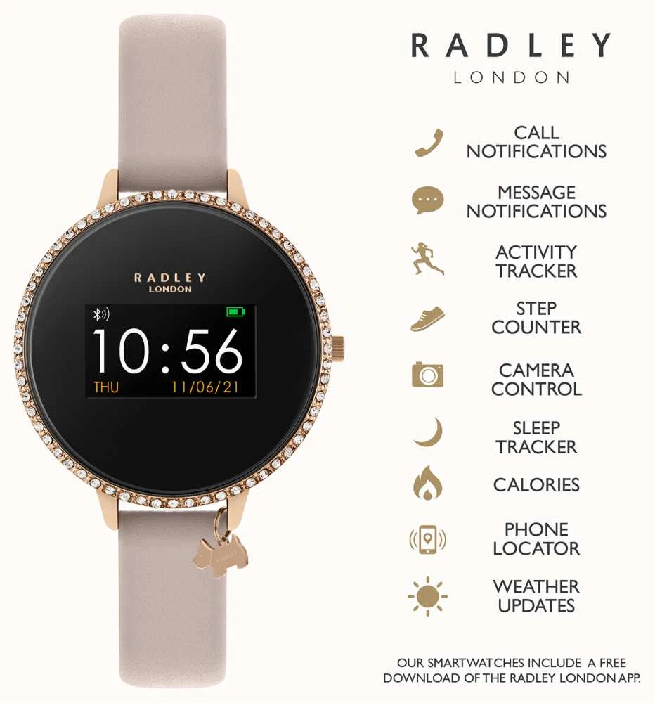 - Radley’s smartwatches are compatible with both Android and iOS and work alongside the Radley Active app.
