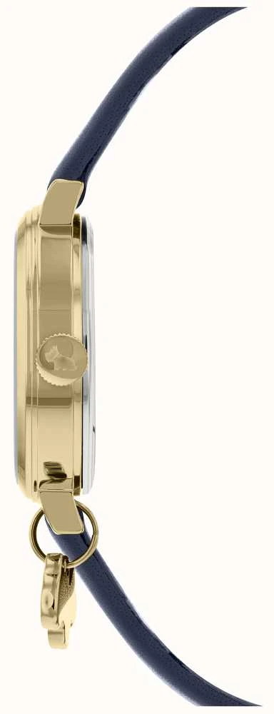 - Securing the watch and guaranteeing comfort to the wearer is the blue leather strap.
