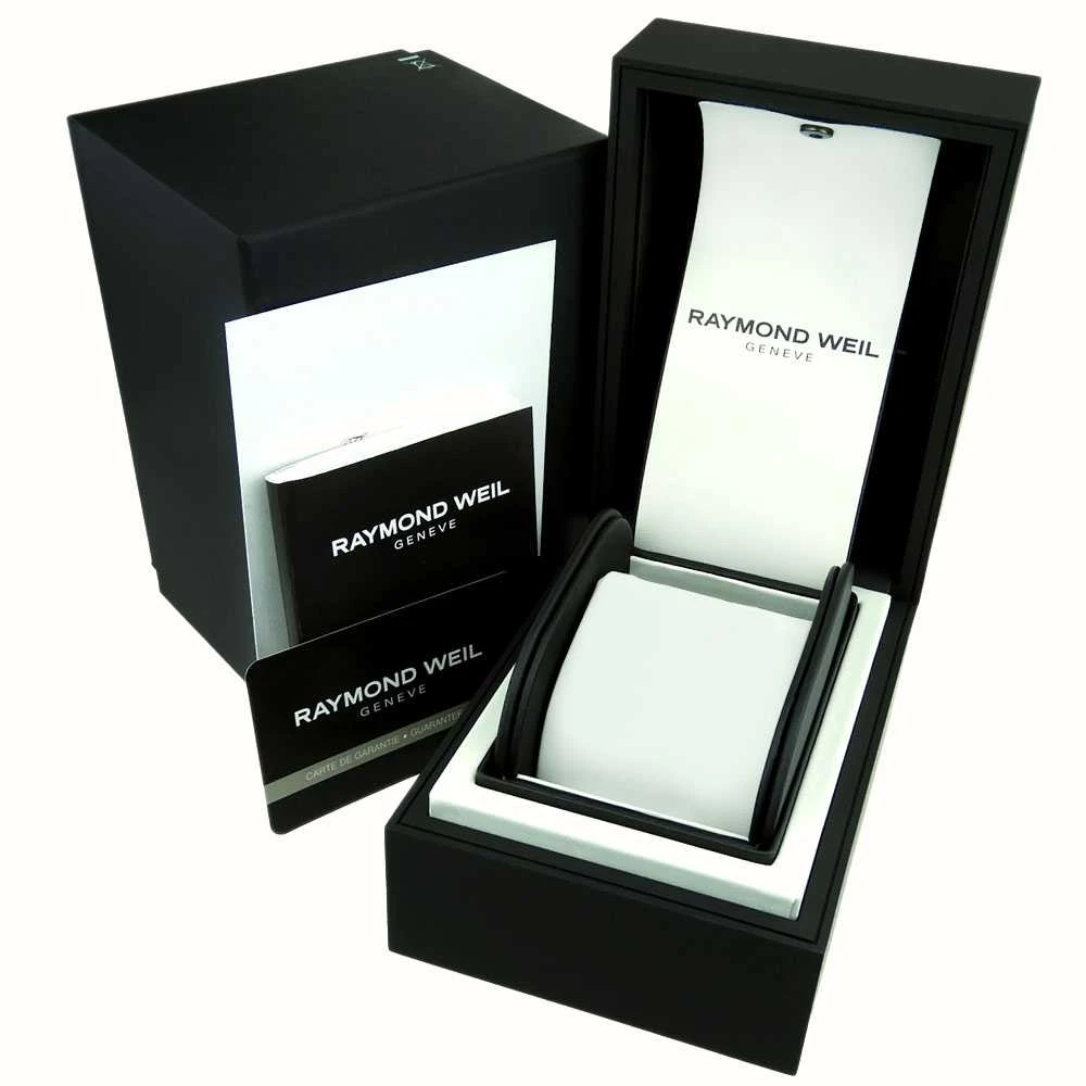- The crown of this model showcases the Raymond Weil logo.