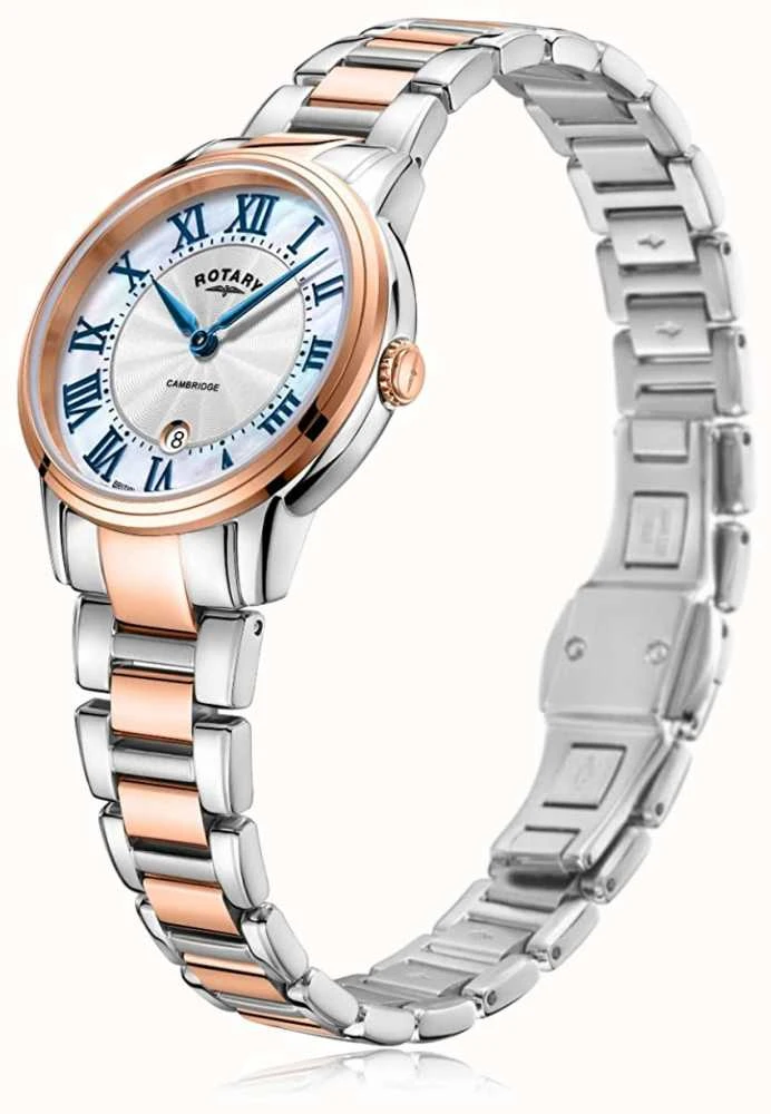 - This watch is finished with a two-tone stainless steel and rose gold plated bracelet.