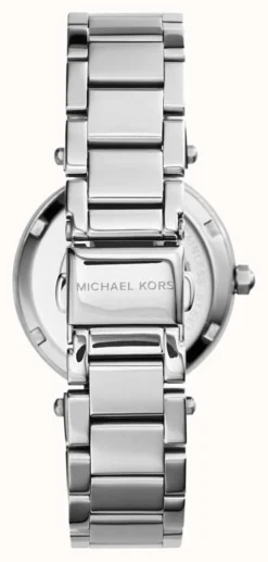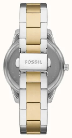 - Completing the look is a two-tone silver and rose gold stainless steel bracelet. The bracelet closes with a butterfly clasp with push buttons.