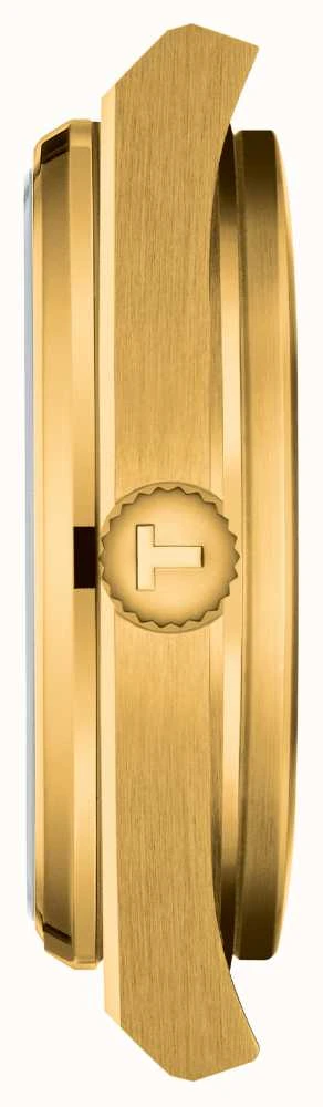 - Securing the watch is an angular yellow gold PVD stainless steel bracelet.