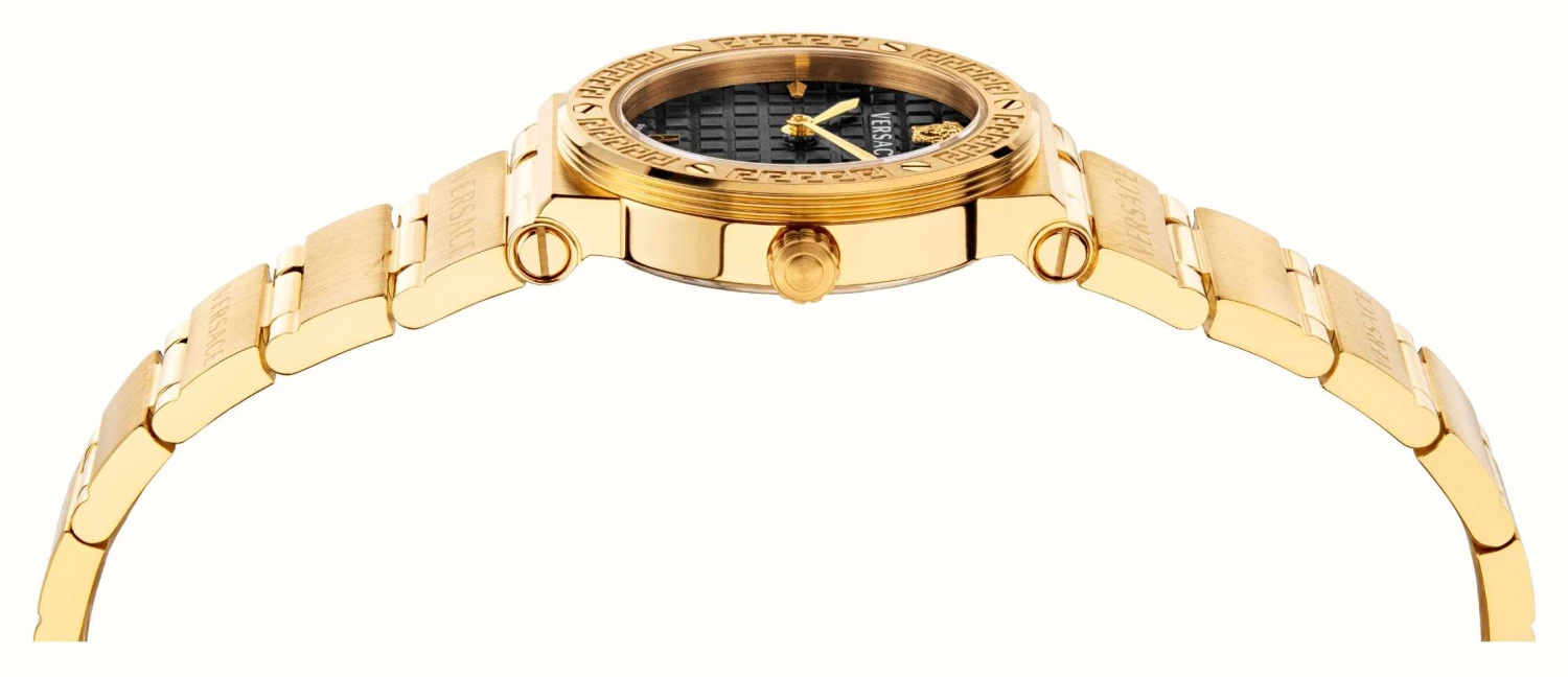 - AĀ gold PVD-plated stainless steel braceletĀ secures the watch to the wrist.Ā