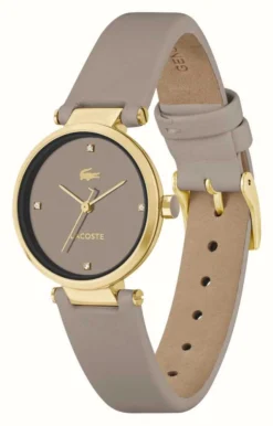 - AĀ black leather strapĀ secures the watch to the wrist.Ā