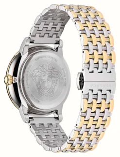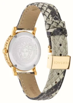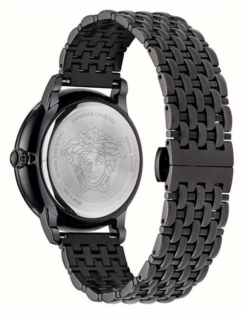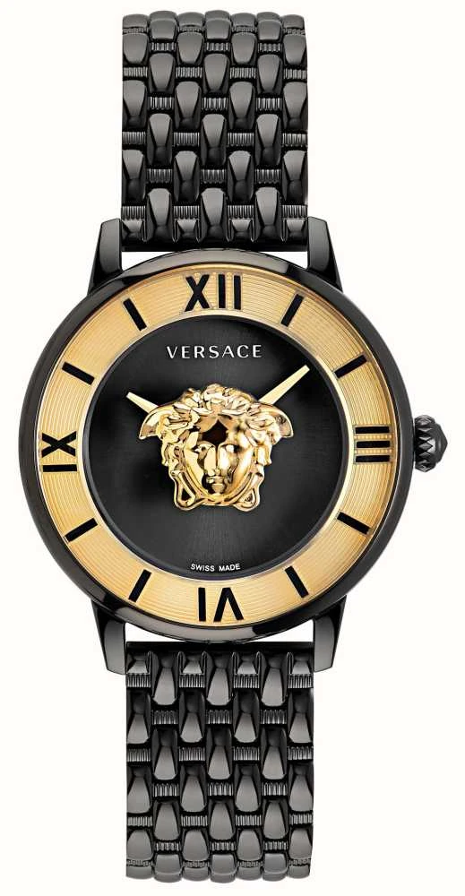 - At the centre of the dial, there is also a three-dimensional Medusa which sits upon gold-tone hour and minute hands.Â